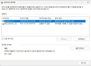 - ✔️ “드라이브 최적화” 창에서 [설정 변경] 버튼 클릭